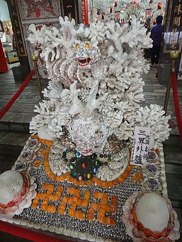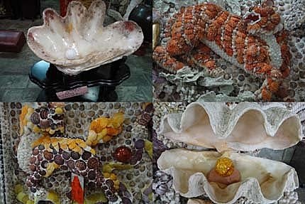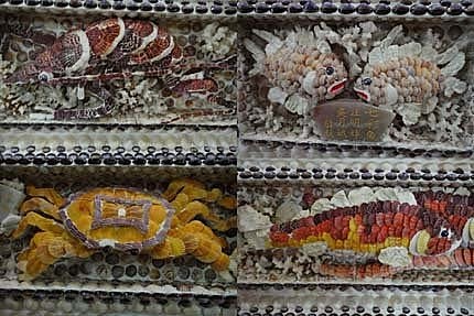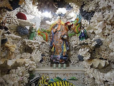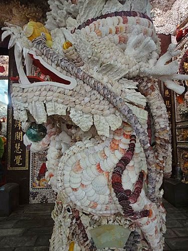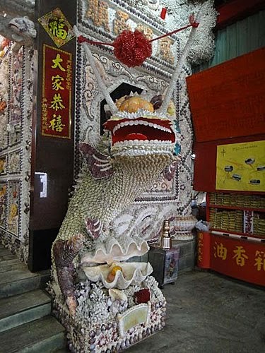 貝殼做的香爐,還有整個貝殼的壁面....這裡有好幾個服務員看守著,就怕人家亂破壞~