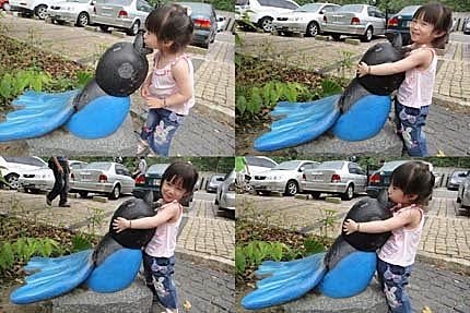 叫她跟小鳥雕像玩親親~配合度極好!親到欲罷不能呢~