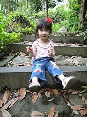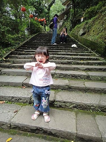 不算短程的階梯,張小妹一氣呵成~自己登頂!你體力....快勝過爸比嚕~
