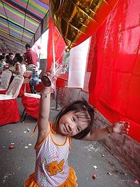 但是...天氣實在太熱啦!大家吃得滿頭大汗.....飲料、果汁、冰水、狂喝~就連張小妹也食不下嚥....只好放任她在一旁玩耍,只要不要吵我吃大餐就好!