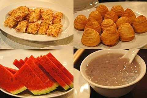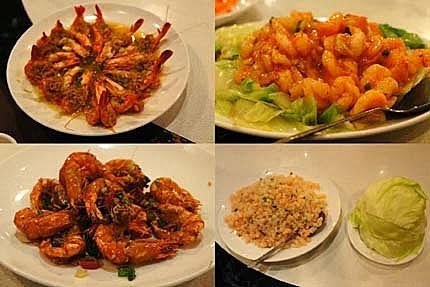 主菜~鮮蝦魚肉少不了,很少吃到的蝦鬆、蜜汁火腿、想到就流口水....好懷念啊!