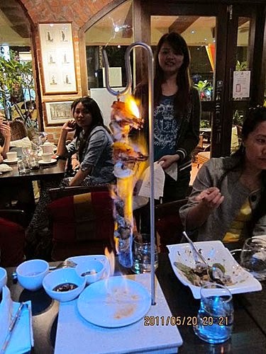 這道菜...很吸引人~趁著熊熊焰火..尚未退前~大家搶拍,連別桌的客人....都在看呢!
