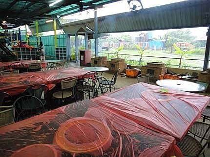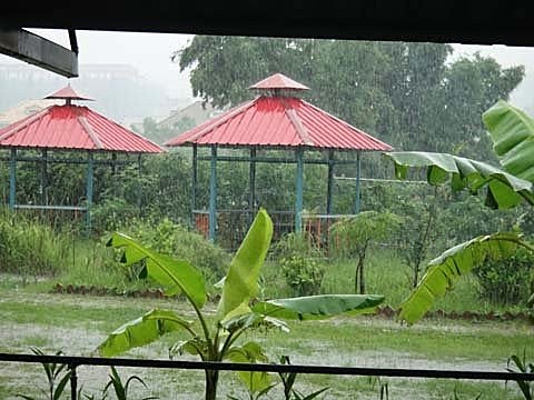 烤肉的場地很大~雷雨也很大!原來....瘋狂的不只我們,還有一大群別的團體.....也是大大小小,興致不減呢~