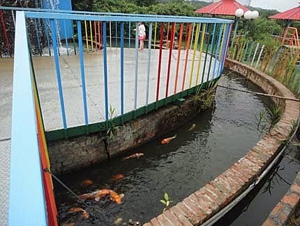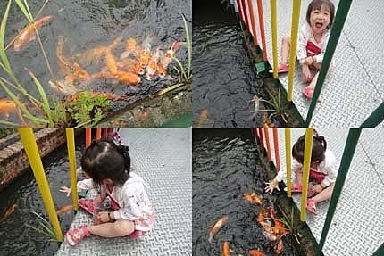 剛吃飽飽~來點靜態的活動,帶張小妹來餵餵鯉魚~大人小孩吃飽飽,魚魚也要吃飽飽!