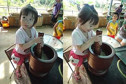 肚子又餓了~想吃麻糬嗎?得自己動手"搗"