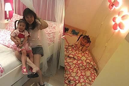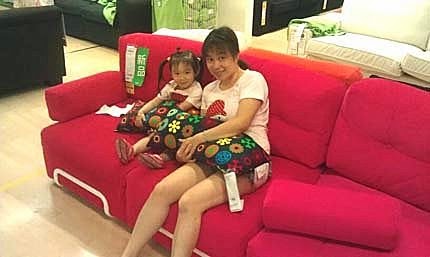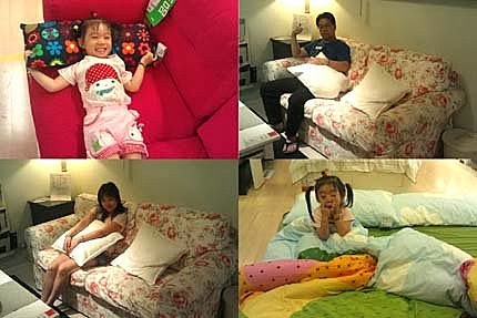 這裡...很適合溜小孩,張小妹看到沙發都要坐一下,看到床...也要躺一下!