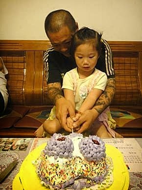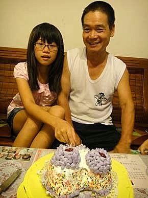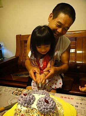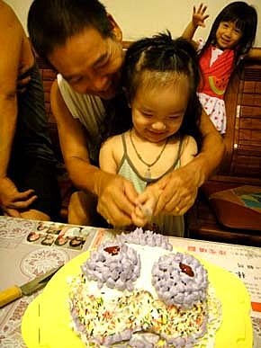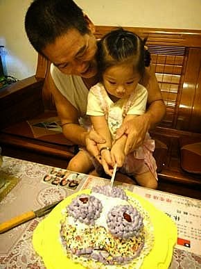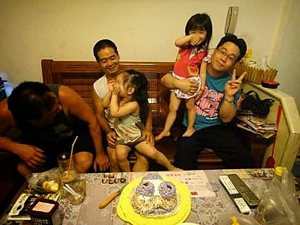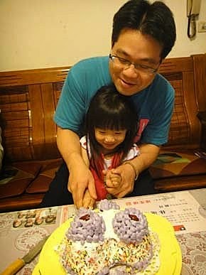 婷婷、璇璇、云云、輪流跟阿公一起切蛋糕!是媽咪做的蛋糕喔....