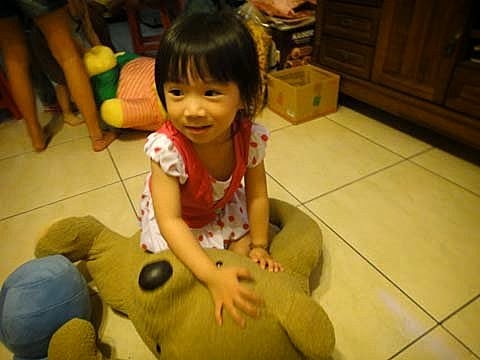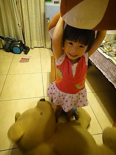 外公家有好幾隻大布偶~引起張小妹的興趣!玩的不亦樂乎呢~