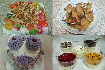 藉此機會~趕緊獻上兩道拿手的料理"鳳梨蝦球&蔥燒雞翅"做了個蛋糕,飯後的甜點"奶酪"還有伴手禮"手工餅乾"(忘了拍照)