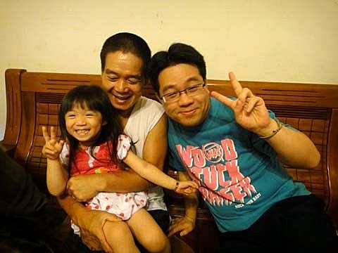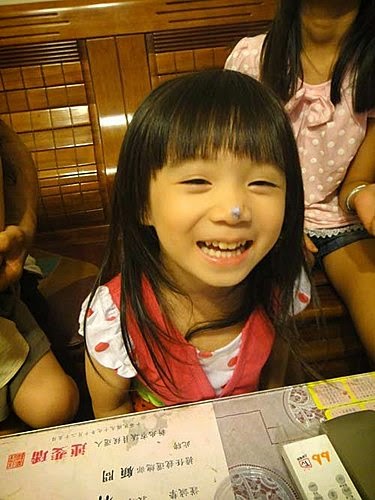 我的鼻鼻上面有奶油~好好笑喔! 這是我的外公和我的爸比~一起慶祝父親節喔!