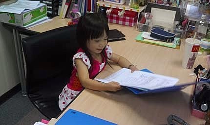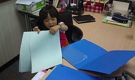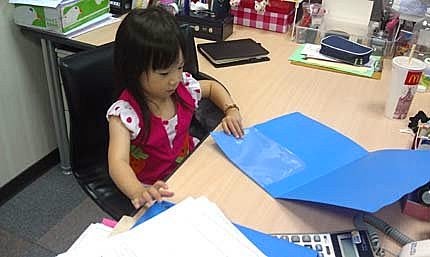 我也是媽咪的好幫手,我會幫媽咪整理文件喔!