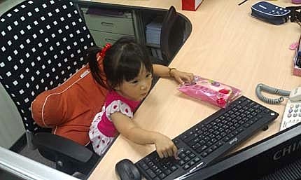 我今天要當小幫手~來幫媽咪工作,打電腦...難不倒我!