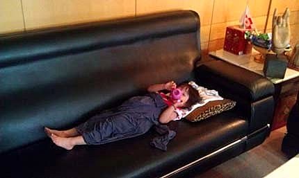 插曲:我睡醒的時候...媽咪在外面忙,我找不到媽咪~就趴在沙發上哭哭!