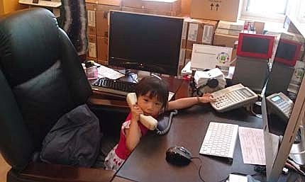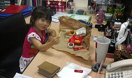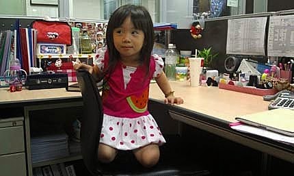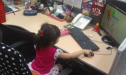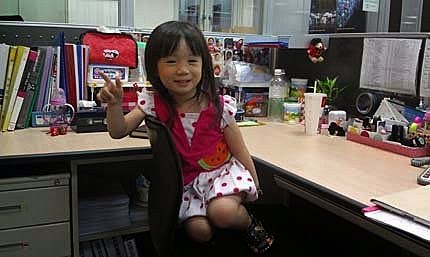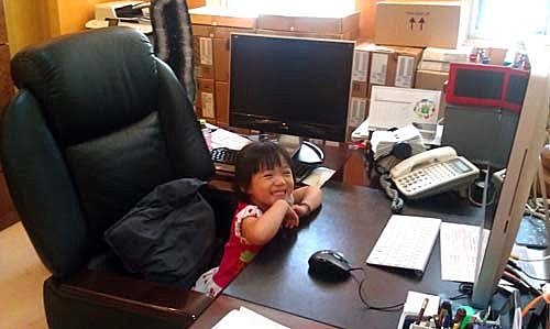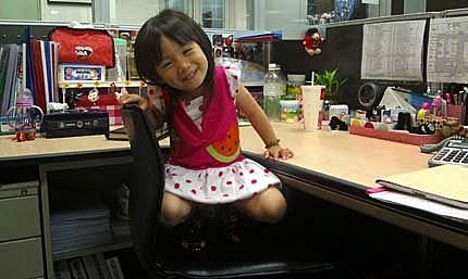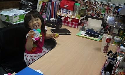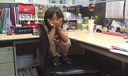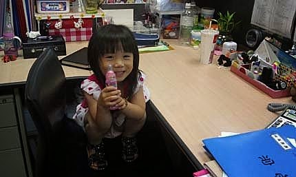 媽咪說:她帶著我來上班,要比平常更努力,要更有效率的工作~才不會被人家講話!