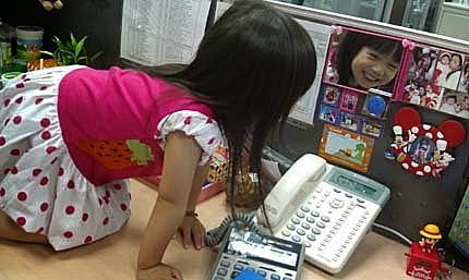 媽咪說:要安靜!不可以吵~不可以說話~因為....有好多叔叔阿姨在上班,不可以打擾人家!那....我躲在媽咪的辦公桌裡,就不會被人家發現了啊!