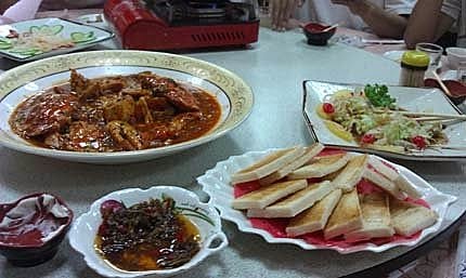 一桌5000元的菜色,有超好吃的焗烤蚵仔~還有生鮮蚵仔~最愛他們的"糖醋螃蟹’醬汁超下飯的~