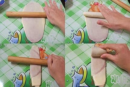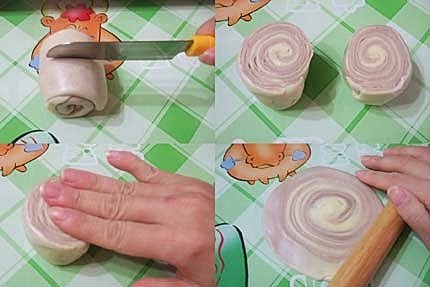 8.分別將麵團橄成直徑約10cm圓形薄片