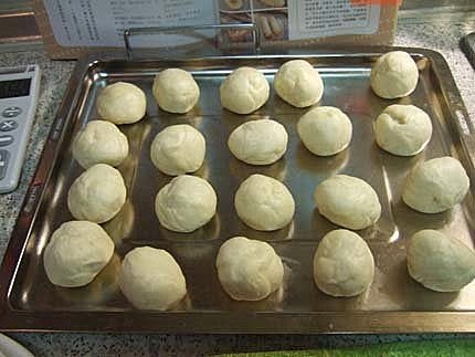 7.休息完成的麵團用刀子從中間部份切下成為2個麵團