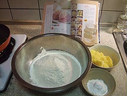 1.中筋麵粉用濾網過篩