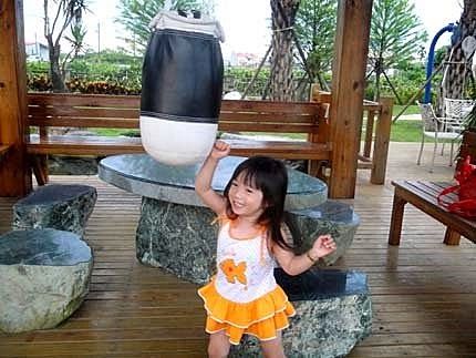 民宿外有小型的游泳池~還有專門為小小孩設計的戲水區,沙坑區!