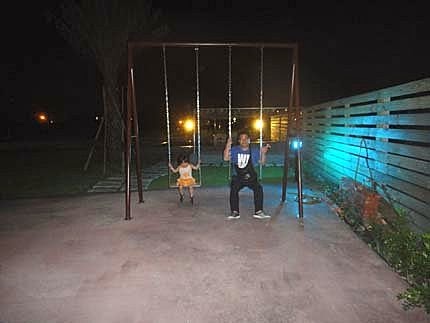 夜晚的民宿~大家在裡面歡唱著!我跟老爺、張小妹在戶外盪鞦韆,享受一下片刻的寧靜!好累的一天啊.....