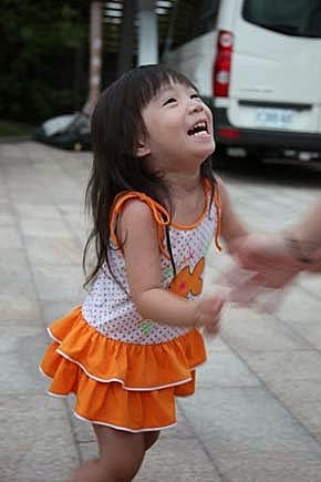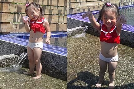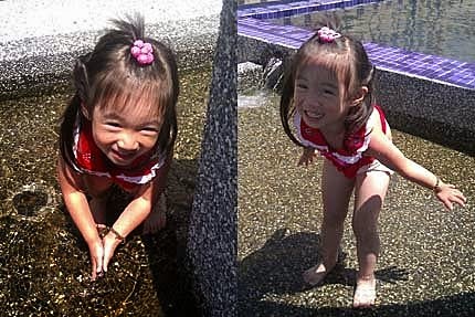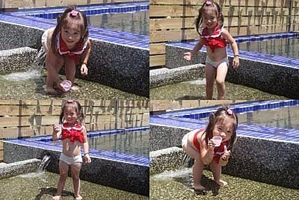 張小妹索性把褲子給脫了...剩下小褲褲~玩起水來!