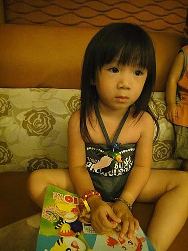 這兩個小朋友~窩在KTV室,累歪了~一臉愛睡的模樣!
