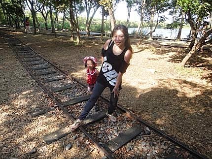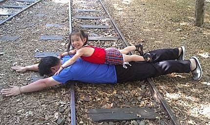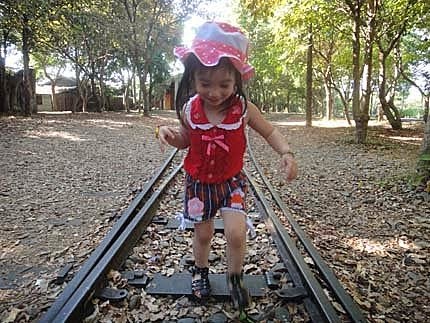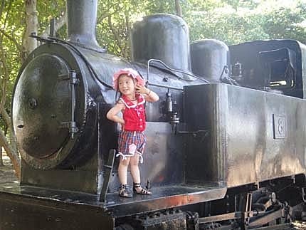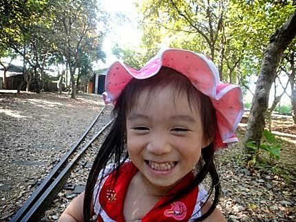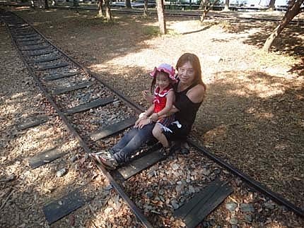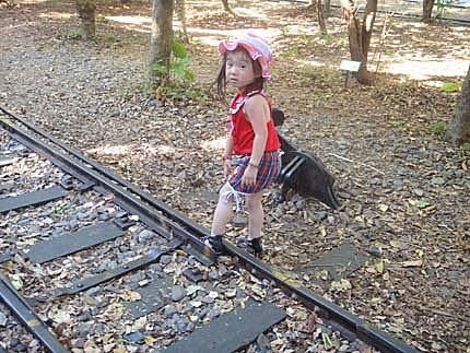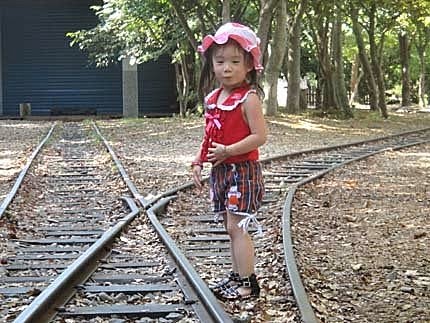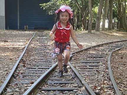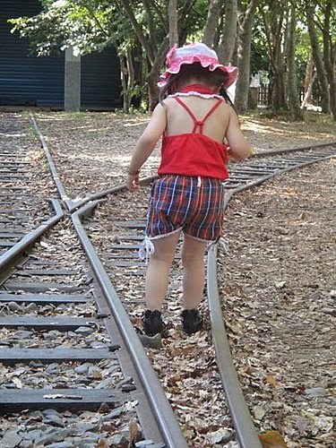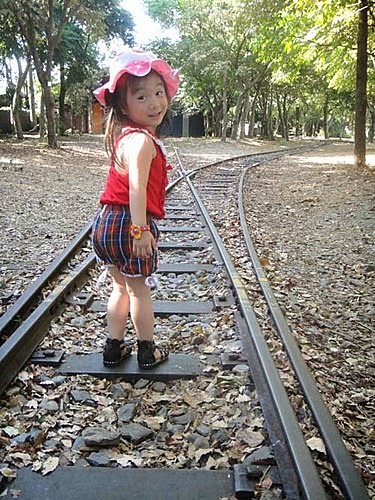 她對鐵軌道路,好奇的很~蹦蹦跳跳的!