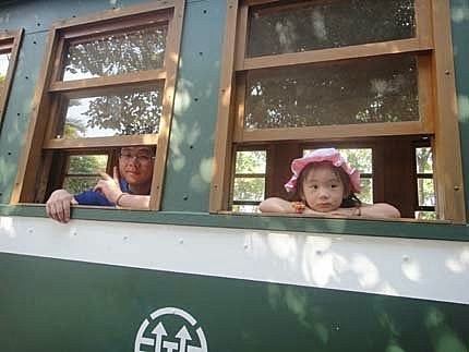 懷念的火車車廂~自從習慣坐老爺開的車後,很少有機會坐火車嚕!