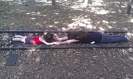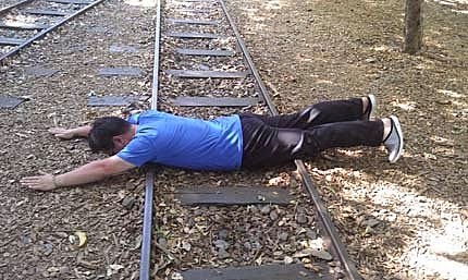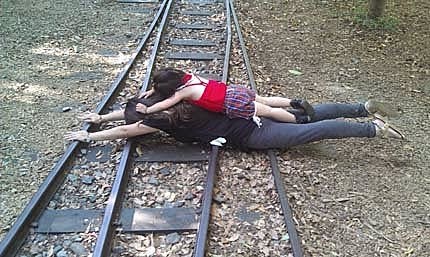 無聊至極~學學網路上最流行的"仆街"而我們是~仆鐵軌配合度超高的張小妹,看到照片,我真的是快笑屬了~