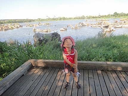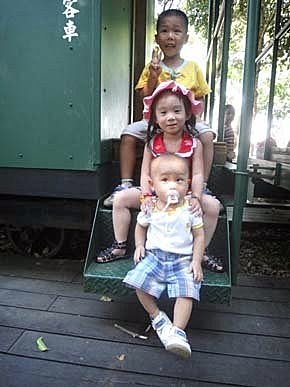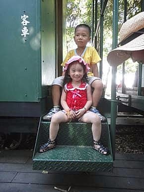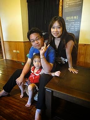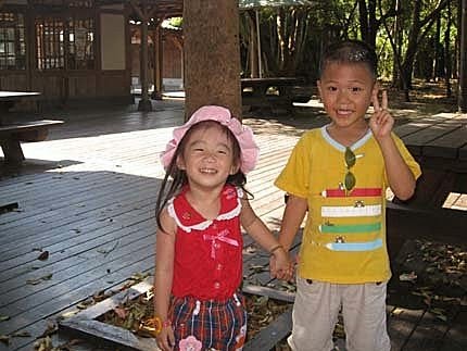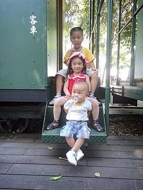 難得找到機會~想要來張"獨照"誰知道這小鬼,躲在我後面"搶戲"真是被打敗了~我的照片哩,不能沒有她~就是了!