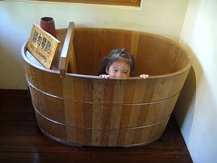 傳統的木桶浴盆,拍了照~才發現旁邊的掛牌"請勿攀爬"不知者無罪...別檢舉我嘿!