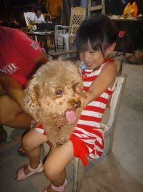 好吃的燒烤~開動嚕!整晚讓張小妹嗨翻天的,就是大姐的寵兒"紅貴賓"看到狗兒逗趣的模樣,小妮子笑了整晚呢!