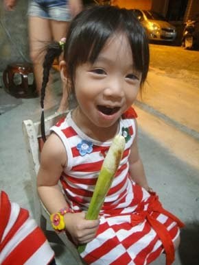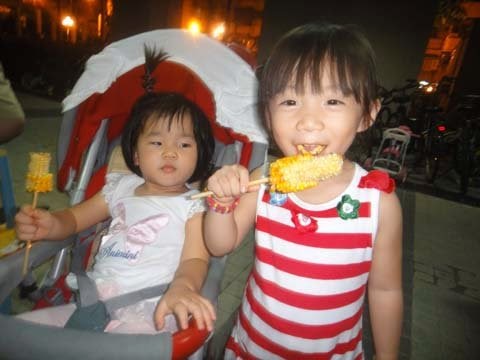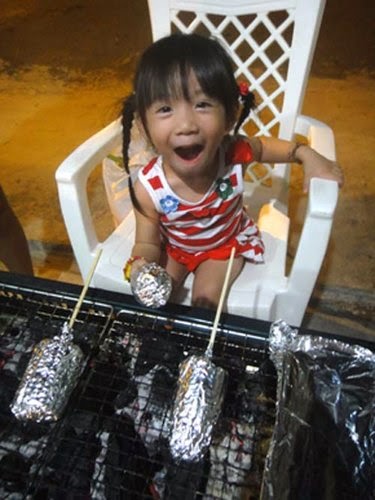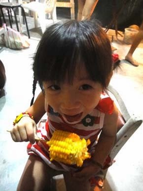 烤玉米~可是難不倒小妮子....有模有樣的扮起大廚呢!