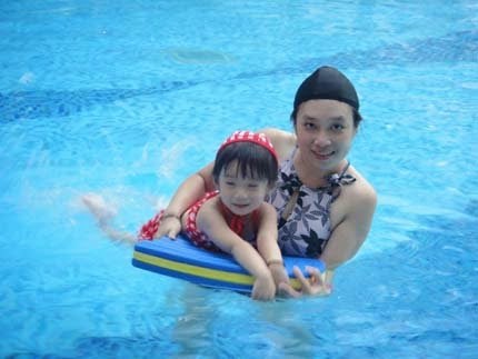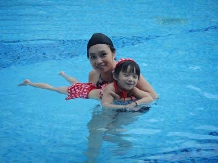 不過~她巴著我,在水裡又踢又滑,玩得好過癮~今晚....她可好睡了!