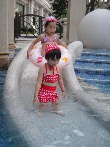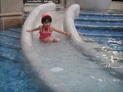 有個小迷你的戲水區,小小的溜滑梯....是張小妹的天下!