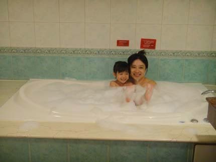 四人份的盥洗用品,小小的浴缸,我們很滿足了!