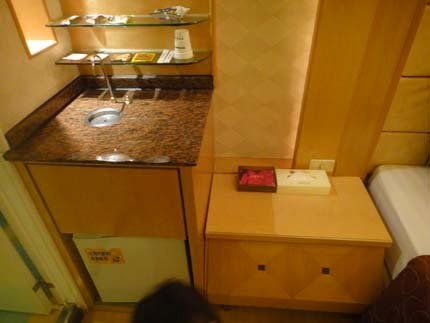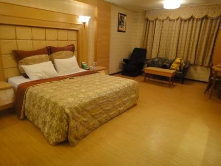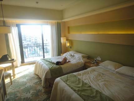 飯店很貼心~因為我們是週五晚上入住,算是平日...他給了我們"四人房"最開心的..莫過於老爺了,可以一個人獨霸一張大床!