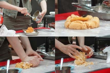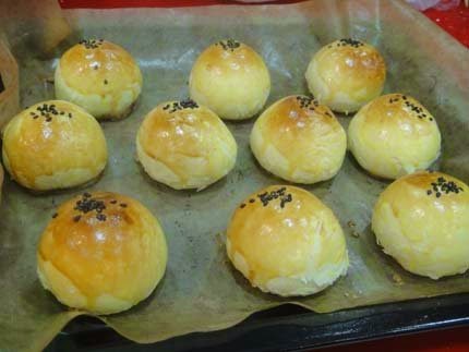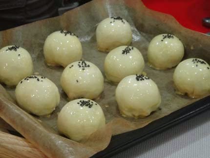 老師的第一個示範作品,就是我最愛的"蛋黃酥"雖然已做過破百顆了~但是今天還是學到許多的竅門!以及失敗的問題點呢!