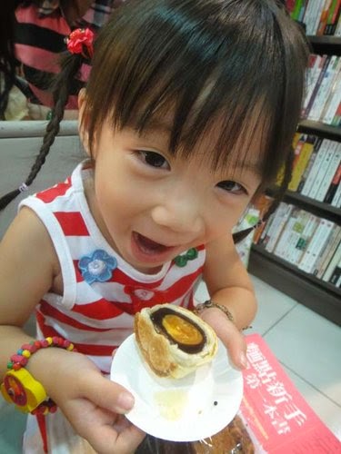 張小妹~毫不客氣的吃掉半個蛋黃酥~
