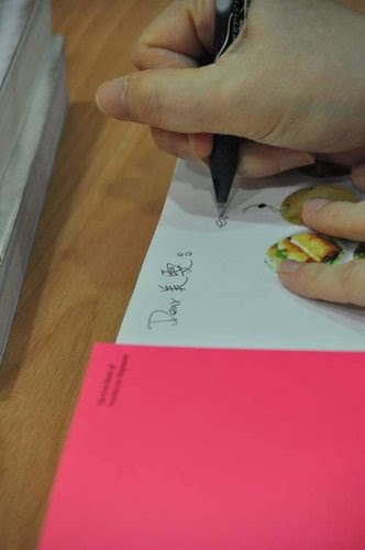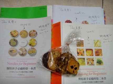 今天真的是大豐收,拿到老師親手作的手工餅乾裡物,還有三本親筆的簽名!真的超開心的啦~