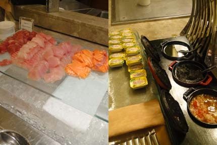 我們倆最愛的生魚片,都是現場切的~真的超新鮮!各式各樣的佐料通通有~