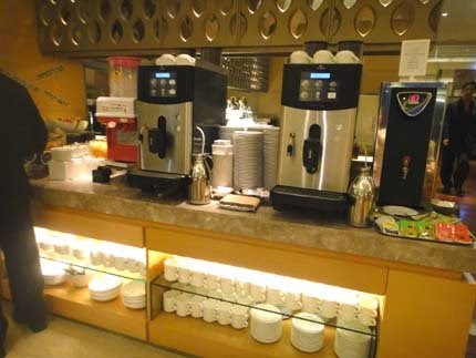飲料區,跳脫傳統的汽水機器台,採用新鮮的果汁,還有咖啡機~