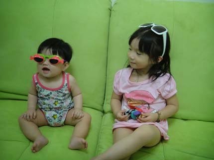 比酷~比炫~兩人墨鏡...超級比一比!瞧....小妞妞開心到嘴巴合不起來呢~SO Q