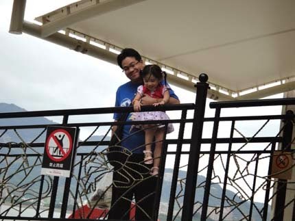張小妹的"憨膽"再次浮現出來~別人看到腿軟的高度,他卻開心的攀在欄杆上~玩耍、拍照!