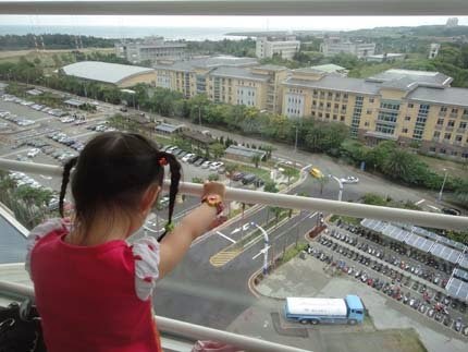 當然...欄杆外圍有玻璃隔著~要不然...我這個媽怎會讓她,作這危險的動作呢!