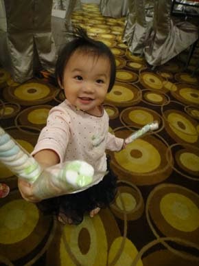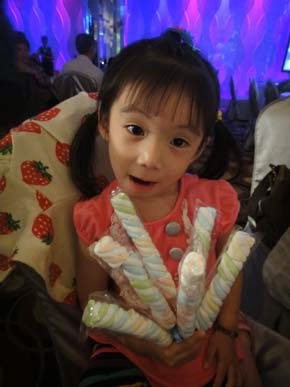 婚禮小物~有好吃的棉花糖+kitty的手工香皂,被偷拍的張小妹..不知道在妖嬌啥!