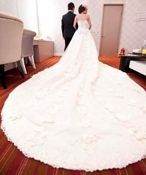 今日的佳人....是企劃部的同仁,俊男美女的組合,好愛看人家穿的婚紗跟禮服喔!