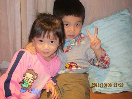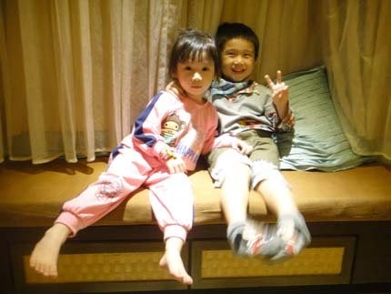 兩小無猜~哥哥玩到捨不得離開房間,還一直想辦法要把張小妹給"帶出場"呢!