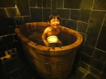 檜木桶浴盆~大理石浴廁~我們母女倆,舒舒服服泡了一個澡呢!